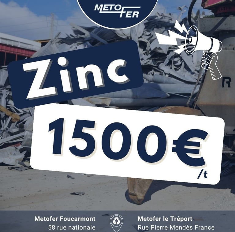 Dès le 10 novembre, nous rachetons votre vieux Zinc à 1500€ la tonne livrée sur notre site du Tréport ou Foucarmont !